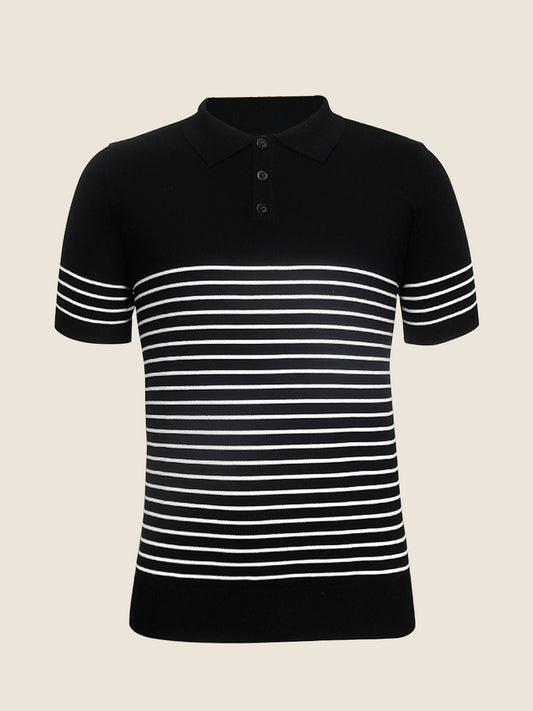 Casual Striped Knit Button Up Polo